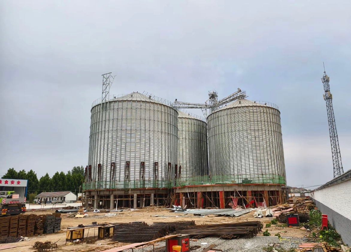 筒仓的拼装式可以实现后期整改跟换单张板修复。同时又具备模块化.易拆.安全高效。钢板仓有内立柱加强筋和外立柱加强筋两种形式,仓壁板选用优质热镀锌板波纹板,外表美观且粮度高,连接螺丝栓采用镀锌螺丝,易于装配连接处选用航空密封胶,密封性好。